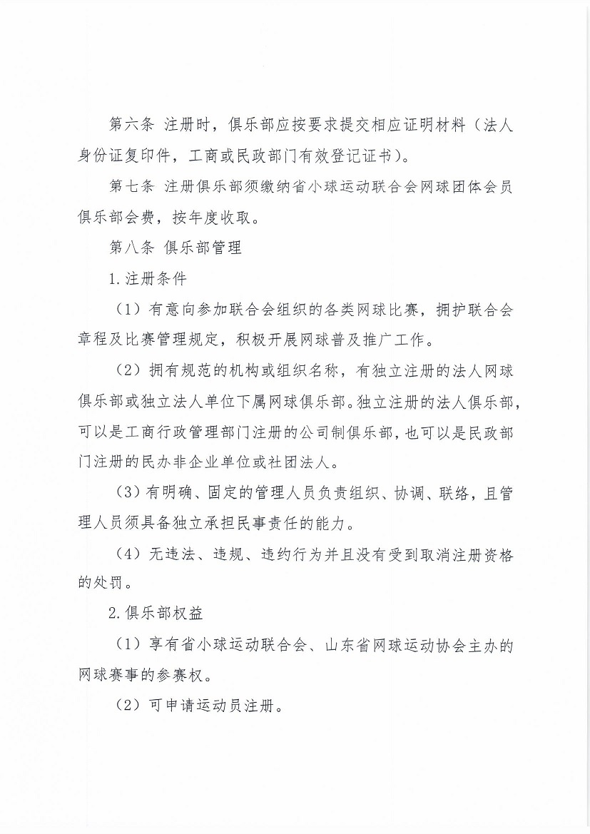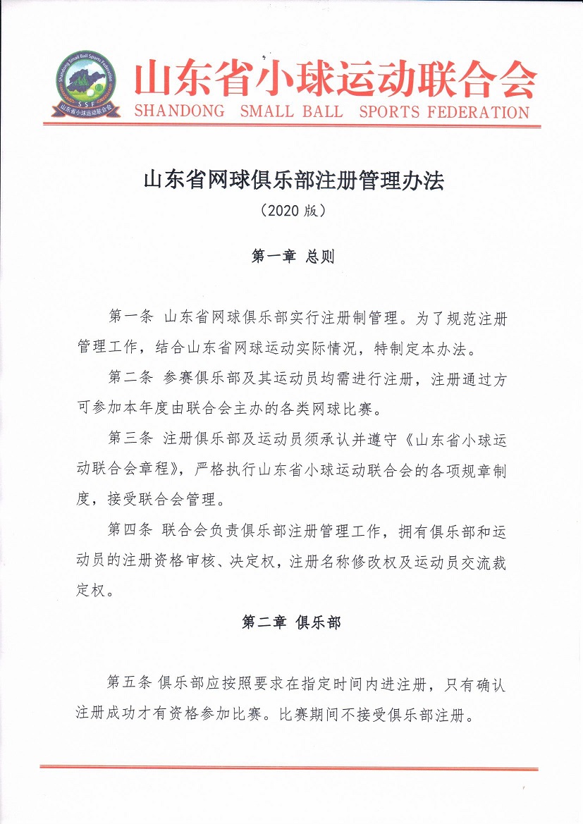山东省网球俱乐部注册管理办法(2020版)